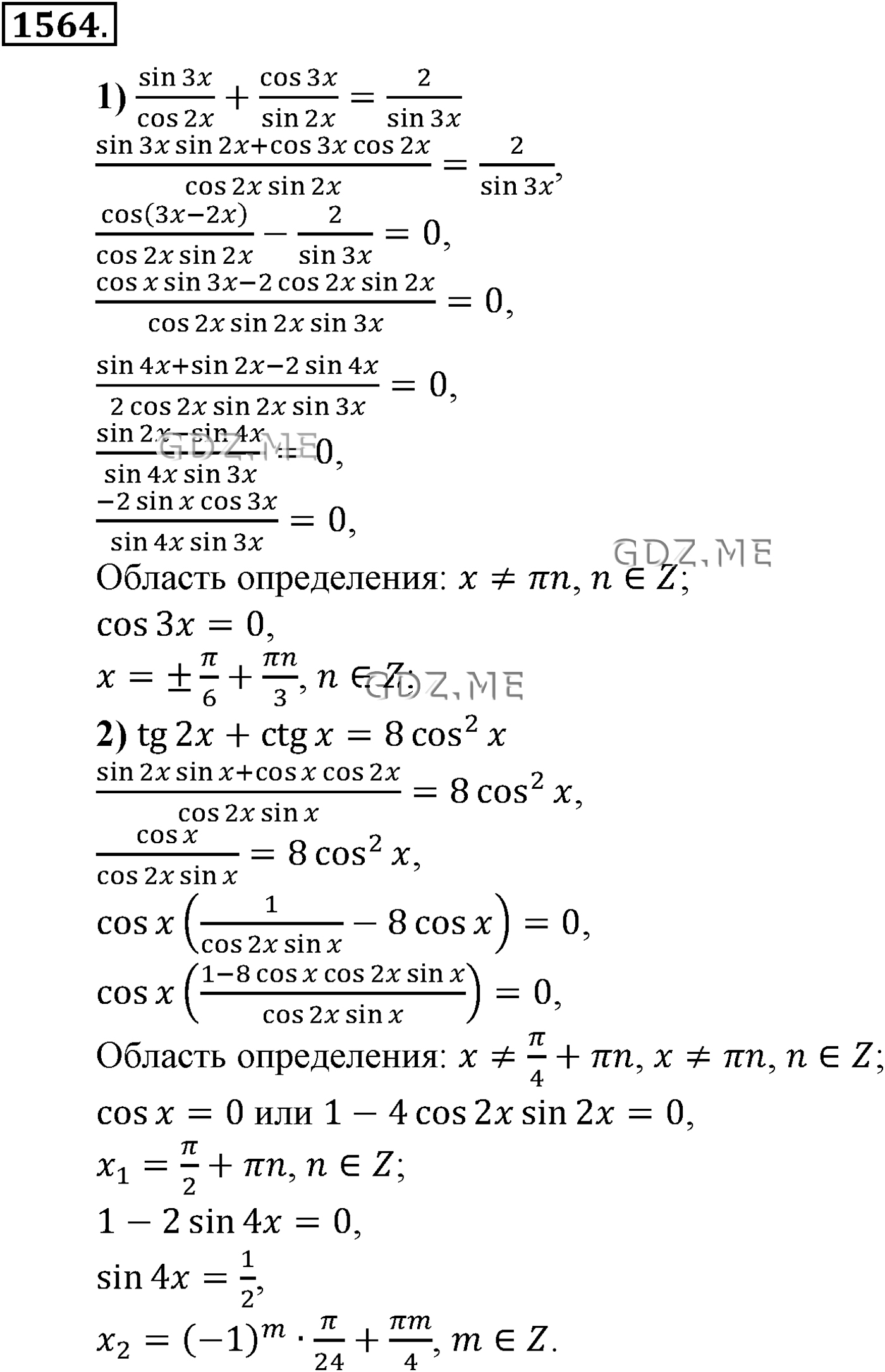 Подробный вариант решения из решебника (ГДЗ): Задание номер 1564 (Глава 15 Задачи для внеклассной работы) по предмету Алгебра, за 10 класс, авторы учебника Алимов, Колягин.