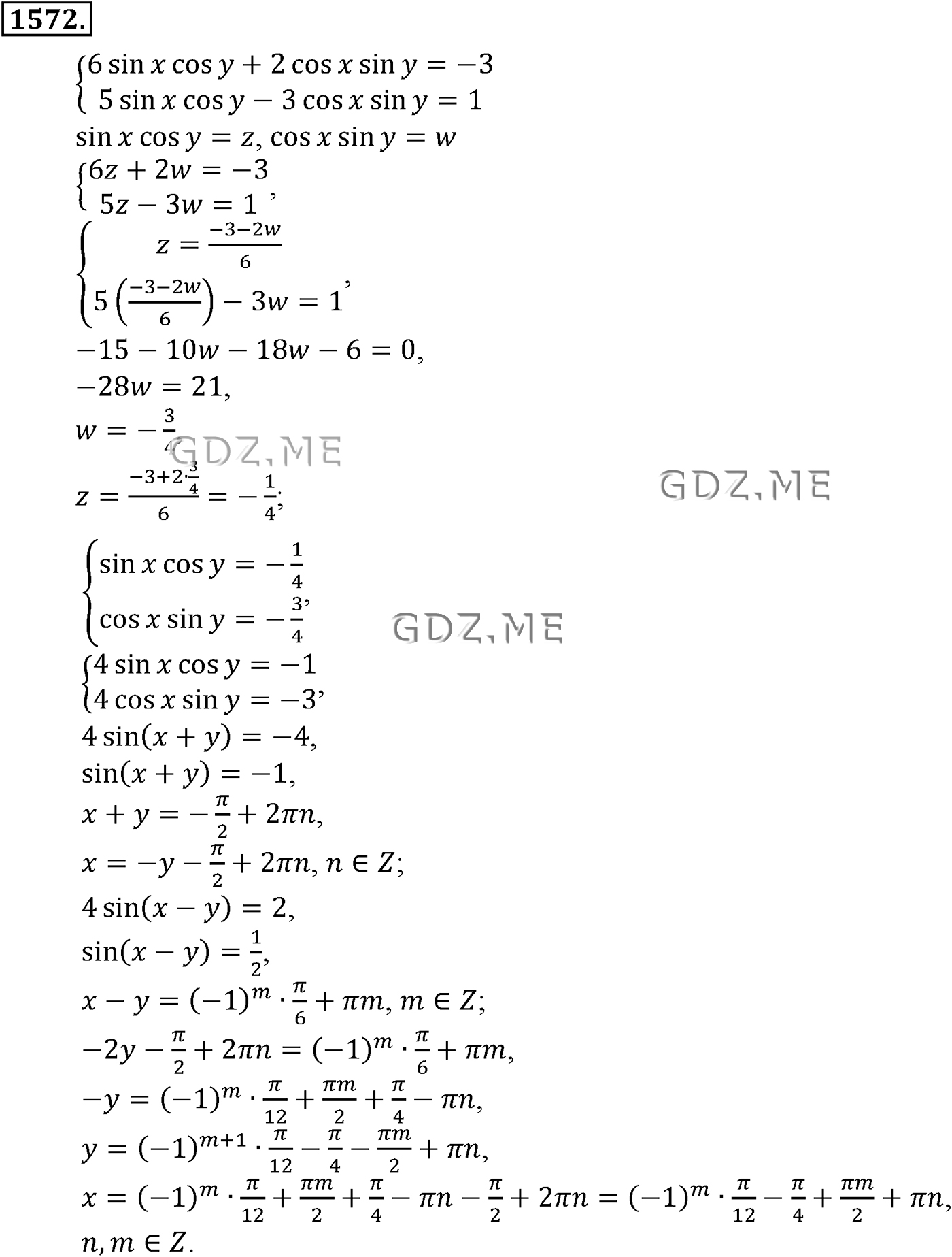 Подробный вариант решения из решебника (ГДЗ): Задание номер 1572 (Глава 15 Задачи для внеклассной работы) по предмету Алгебра, за 10 класс, авторы учебника Алимов, Колягин.