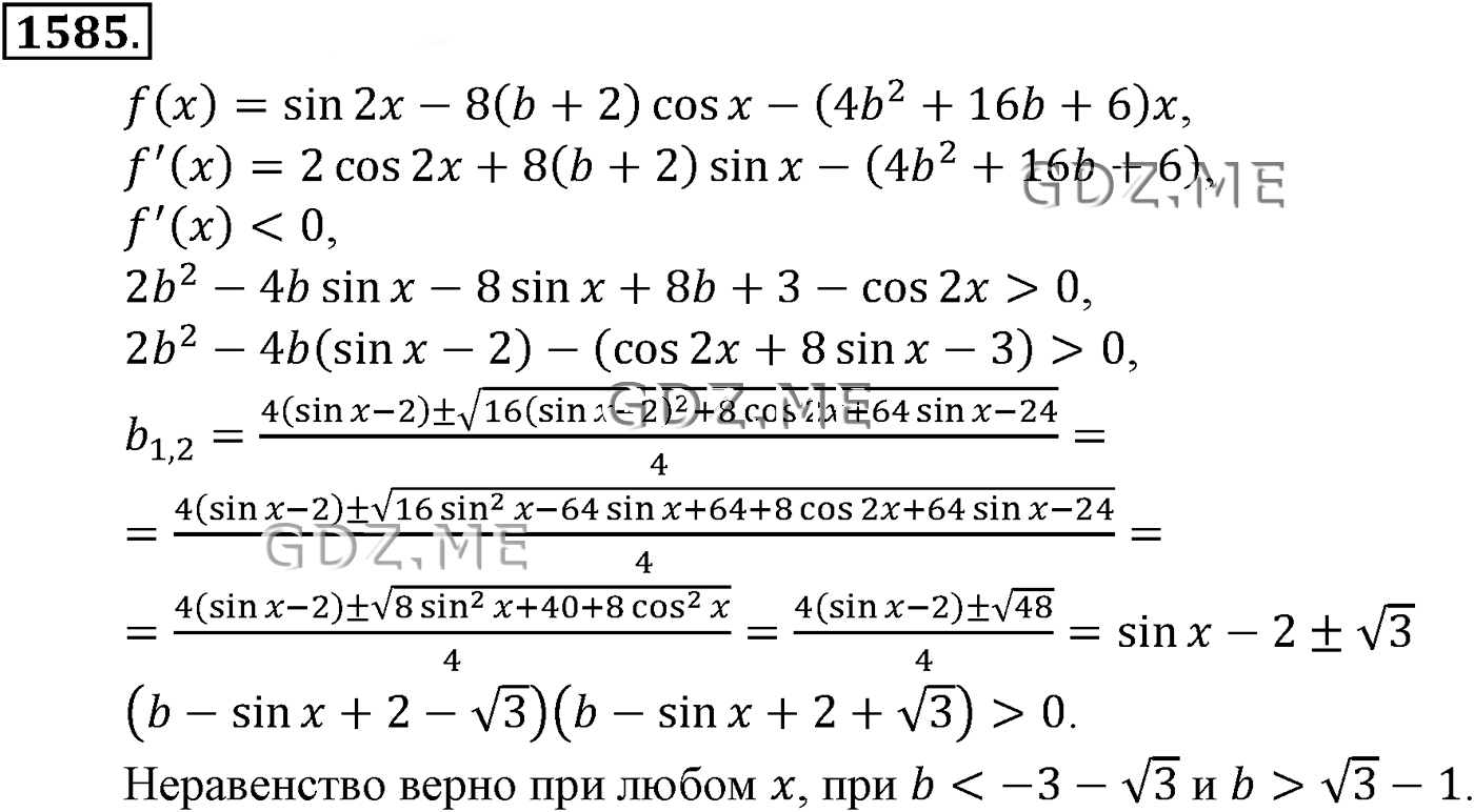 ГДЗ по Алгебре за 10 и 11 класс Алимов, Колягин. Ответ на Задание номер 1585 (Глава 15 Задачи для внеклассной работы)