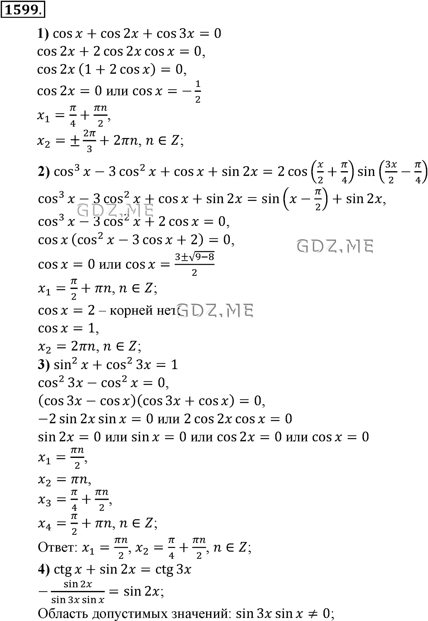 ГДЗ по Алгебре за 10 и 11 класс Алимов, Колягин. Ответ на Задание номер 1599.1 (Глава 15 Задачи для внеклассной работы)