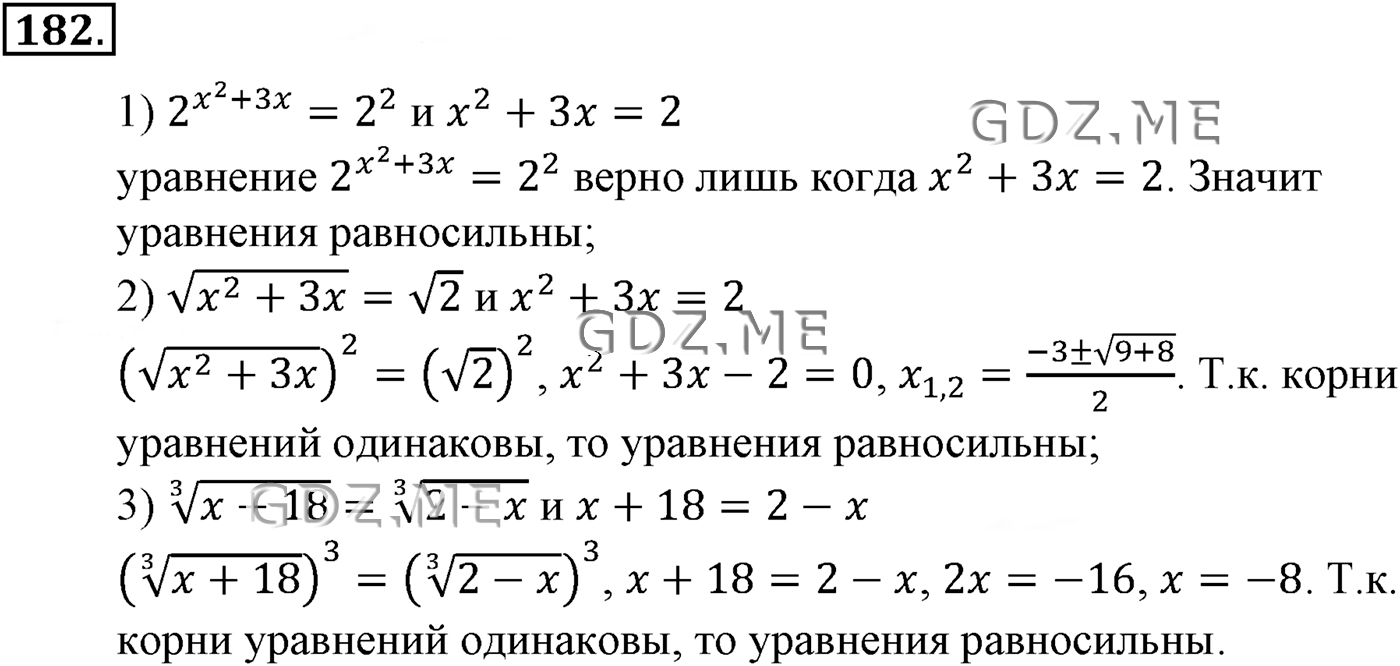 ГДЗ по Алгебре за 10 и 11 класс Алимов, Колягин. Ответ на Задание номер 182 (Глава 2 Степенная функция)
