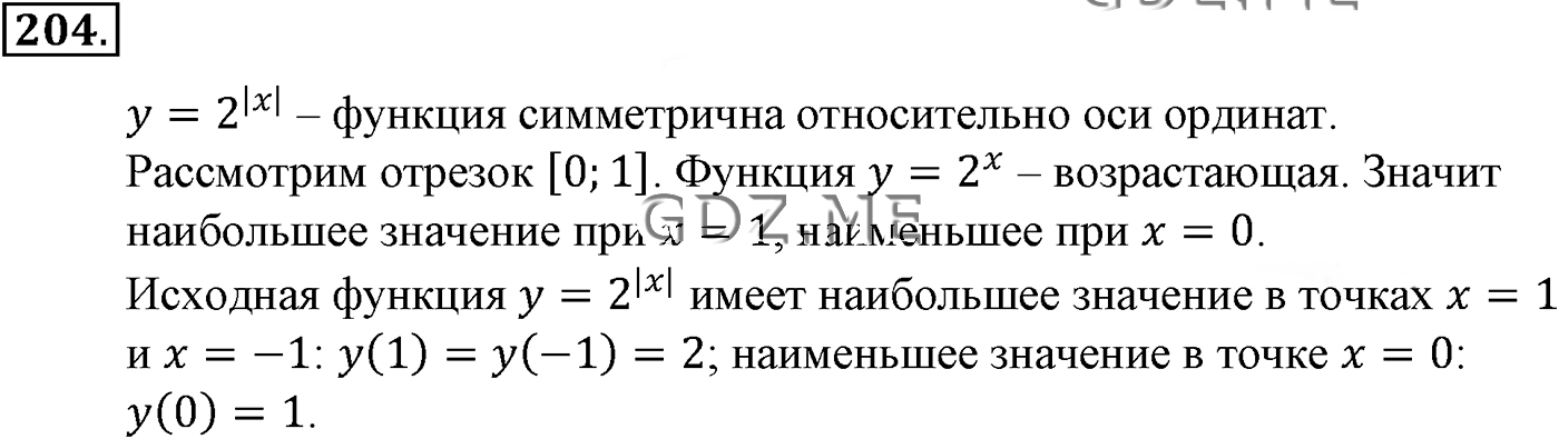 Подробный вариант решения из решебника (ГДЗ): Задание номер 204 (Глава 3 Показательная функция) по предмету Алгебра, за 10 класс, авторы учебника Алимов, Колягин.
