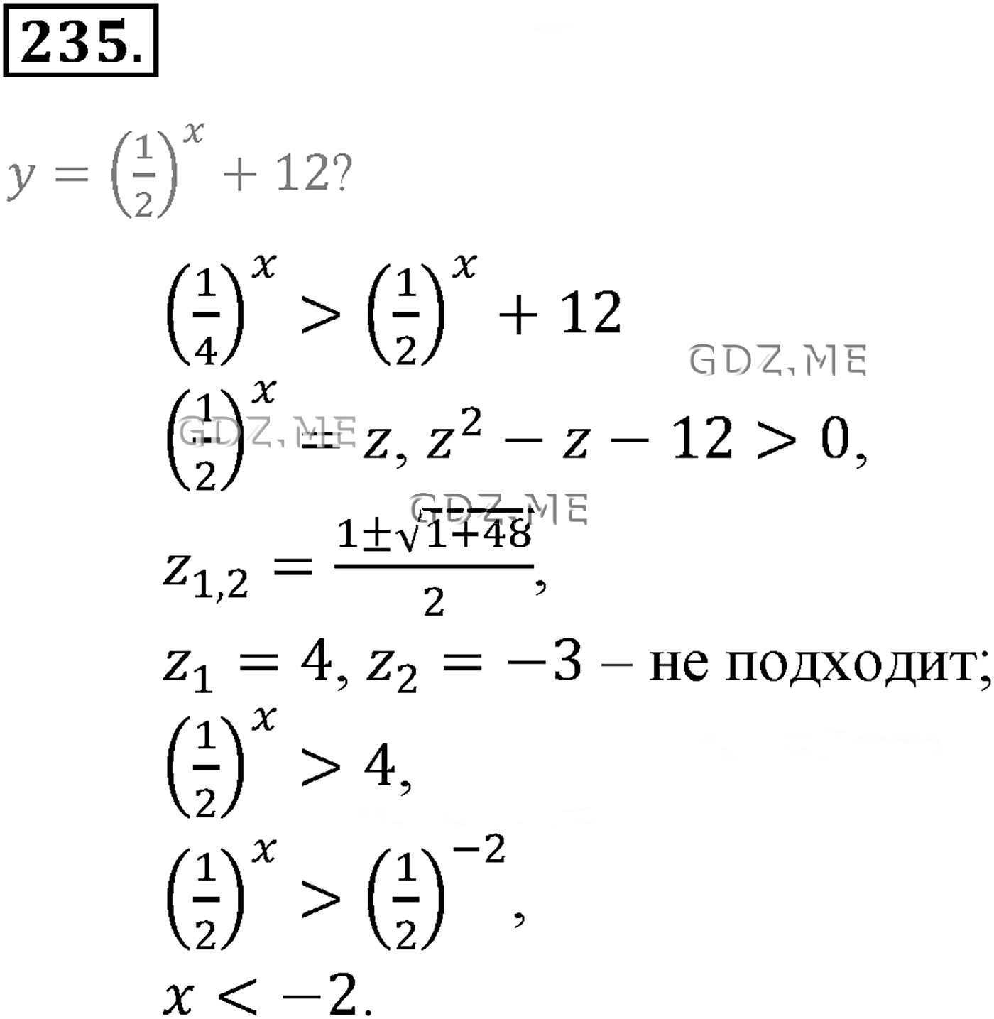 Подробный вариант решения из решебника (ГДЗ): Задание номер 235 (Глава 3 Показательная функция) по предмету Алгебра, за 10 класс, авторы учебника Алимов, Колягин.