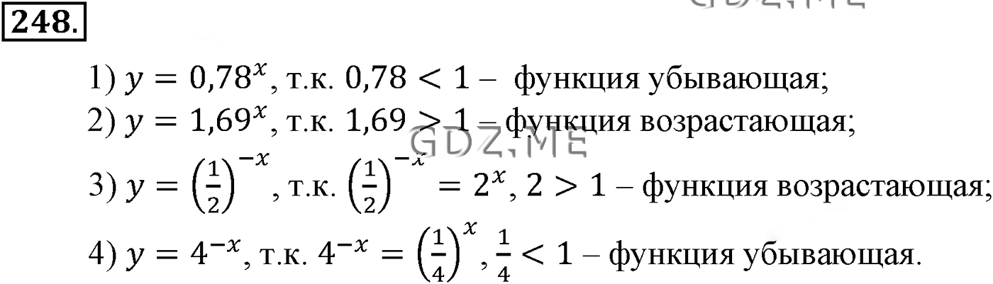 Подробный вариант решения из решебника (ГДЗ): Задание номер 248 (Глава 3 Показательная функция) по предмету Алгебра, за 10 класс, авторы учебника Алимов, Колягин.