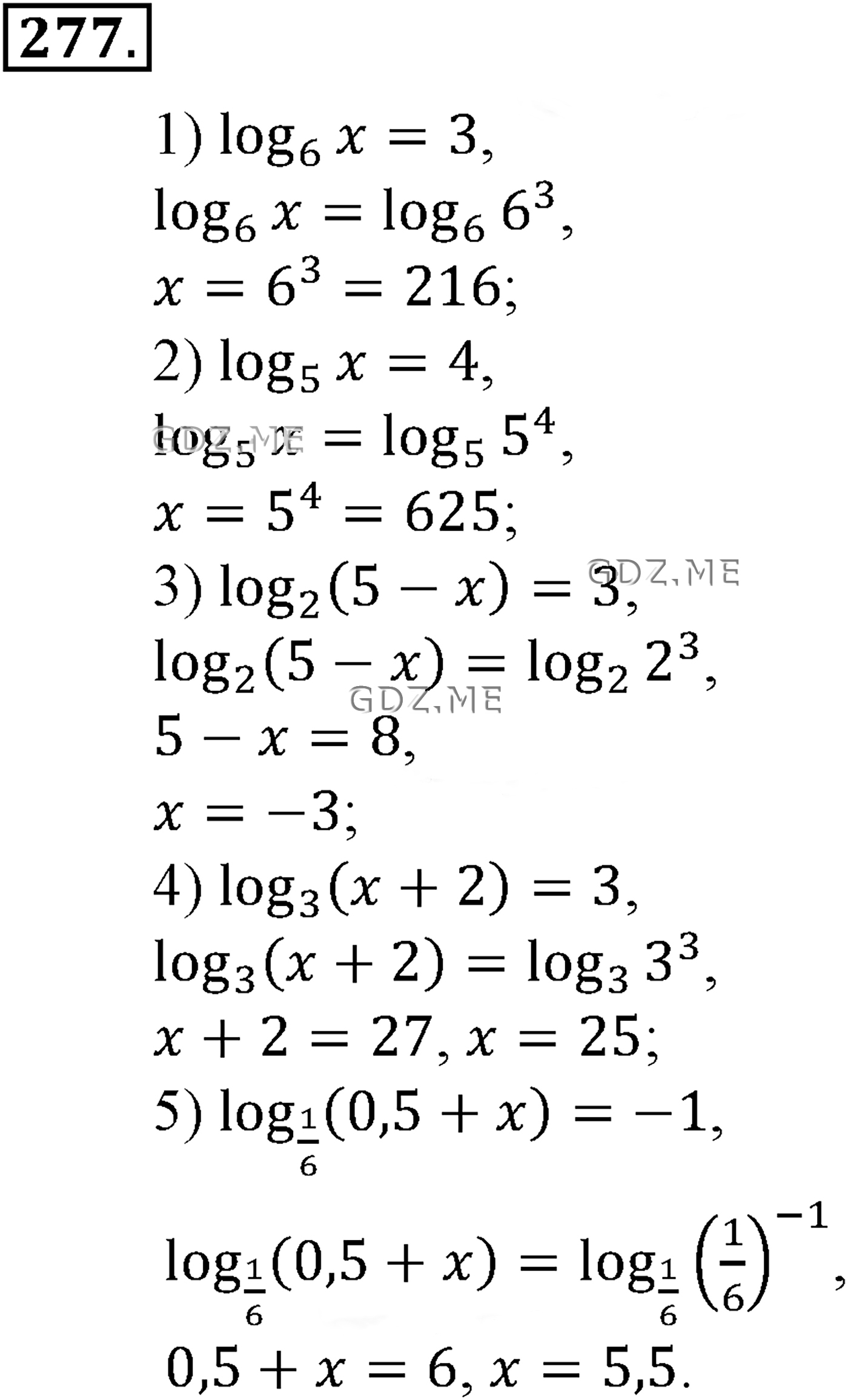 Подробный вариант решения из решебника (ГДЗ): Задание номер 277 (Глава 4 Логарифмическая функция) по предмету Алгебра, за 10 класс, авторы учебника Алимов, Колягин.