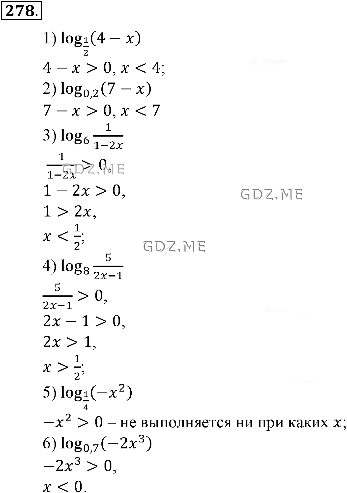ГДЗ по Алгебре за 10 и 11 класс Алимов, Колягин. Ответ на Задание номер 278 (Глава 4 Логарифмическая функция)