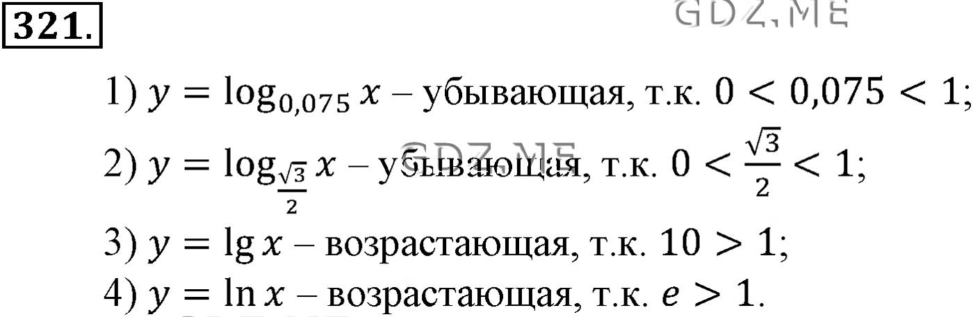 ГДЗ по Алгебре за 10 и 11 класс Алимов, Колягин. Ответ на Задание номер 321 (Глава 4 Логарифмическая функция)
