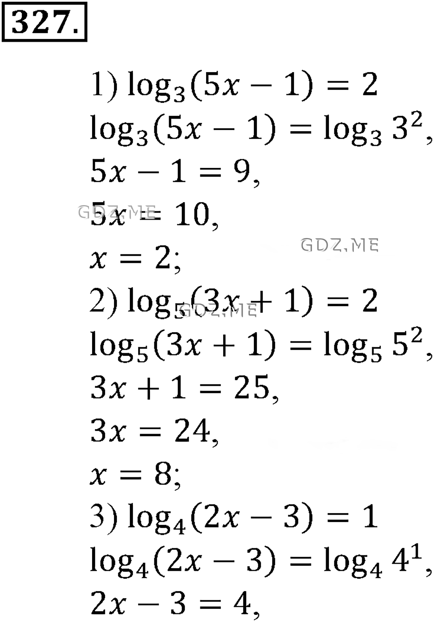 ГДЗ по Алгебре за 10 и 11 класс Алимов, Колягин. Ответ на Задание номер 327.1 (Глава 4 Логарифмическая функция)