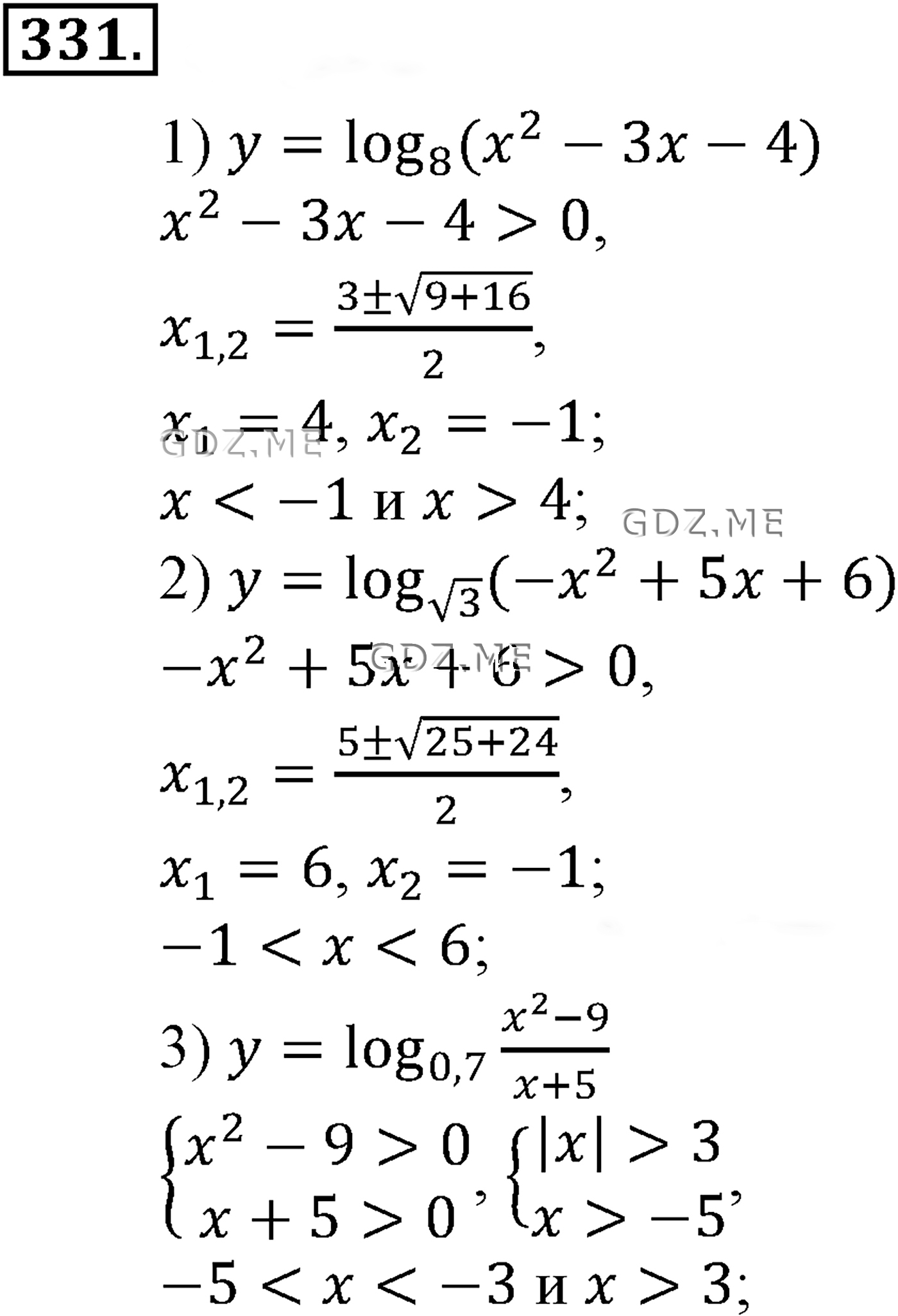 ГДЗ по Алгебре за 10 и 11 класс Алимов, Колягин. Ответ на Задание номер 331.1 (Глава 4 Логарифмическая функция)