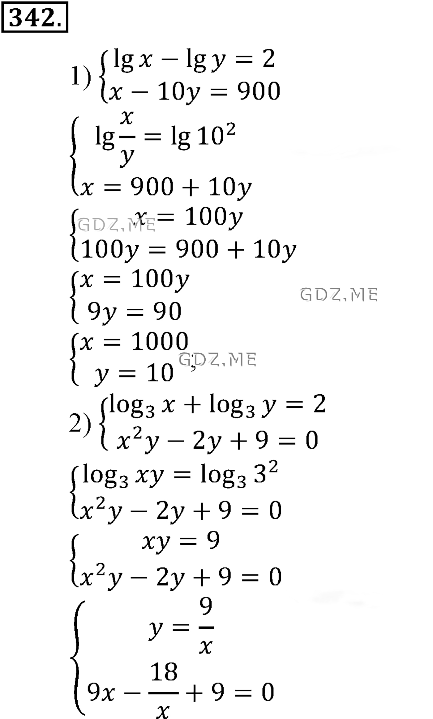 Подробный вариант решения из решебника (ГДЗ): Задание номер 342.1 (Глава 4 Логарифмическая функция) по предмету Алгебра, за 10 класс, авторы учебника Алимов, Колягин.