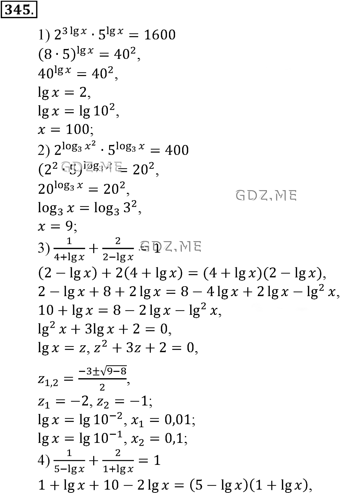 Подробный вариант решения из решебника (ГДЗ): Задание номер 345.1 (Глава 4 Логарифмическая функция) по предмету Алгебра, за 10 класс, авторы учебника Алимов, Колягин.