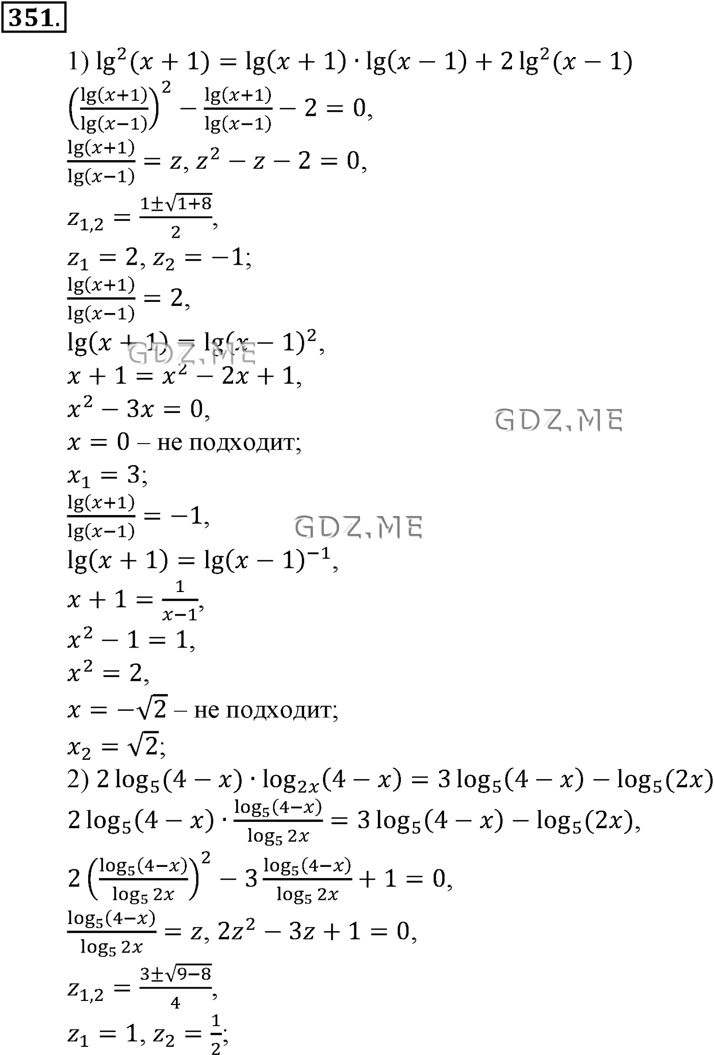 Подробный вариант решения из решебника (ГДЗ): Задание номер 351.1 (Глава 4 Логарифмическая функция) по предмету Алгебра, за 10 класс, авторы учебника Алимов, Колягин.