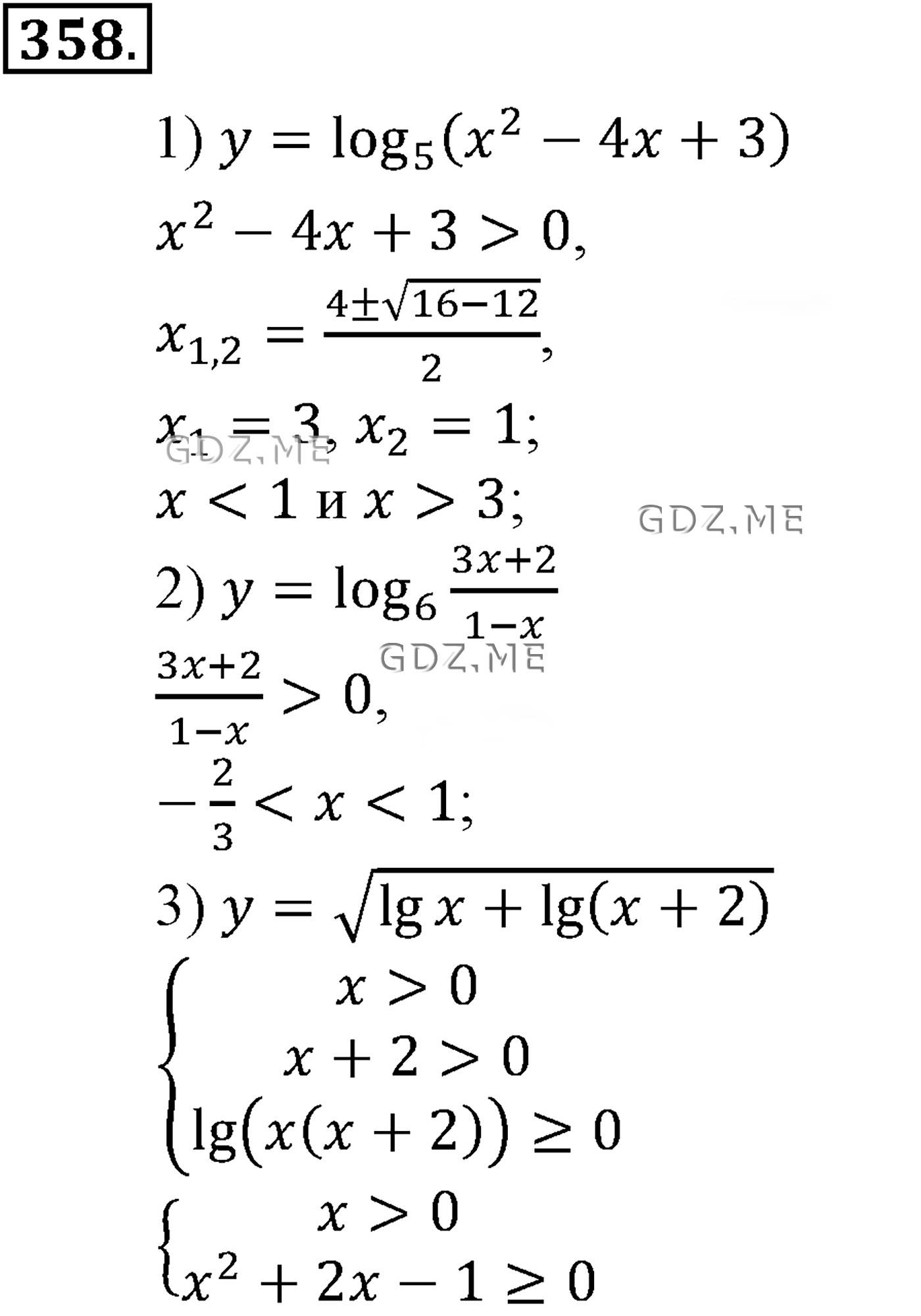 ГДЗ по Алгебре за 10 и 11 класс Алимов, Колягин. Ответ на Задание номер 358.1 (Глава 4 Логарифмическая функция)