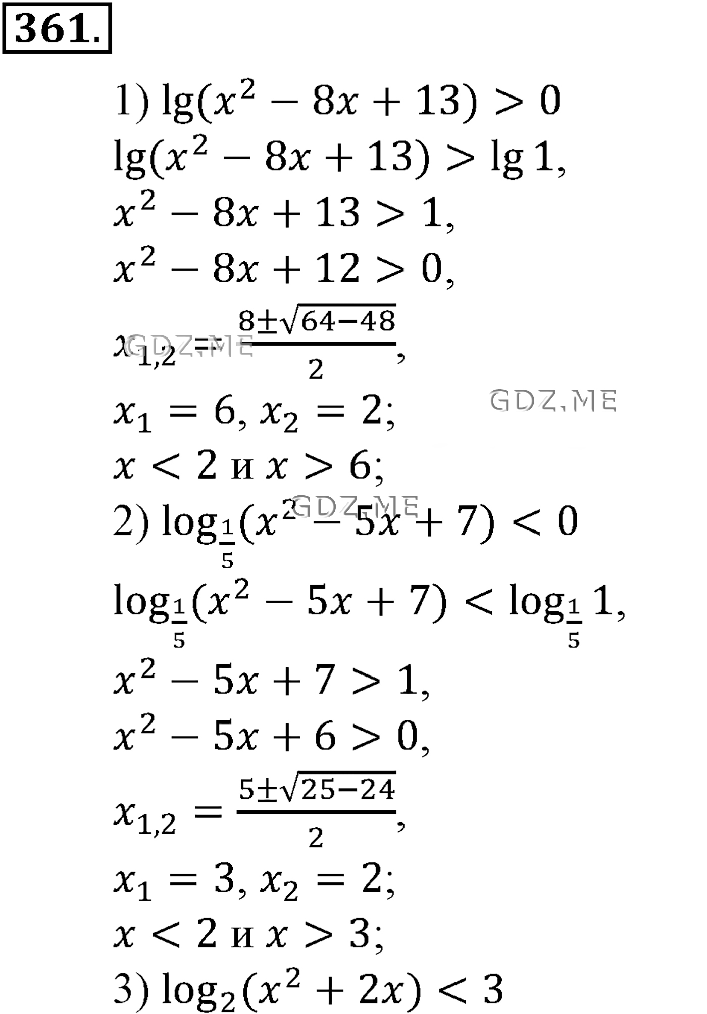 Подробный вариант решения из решебника (ГДЗ): Задание номер 361.1 (Глава 4 Логарифмическая функция) по предмету Алгебра, за 10 класс, авторы учебника Алимов, Колягин.