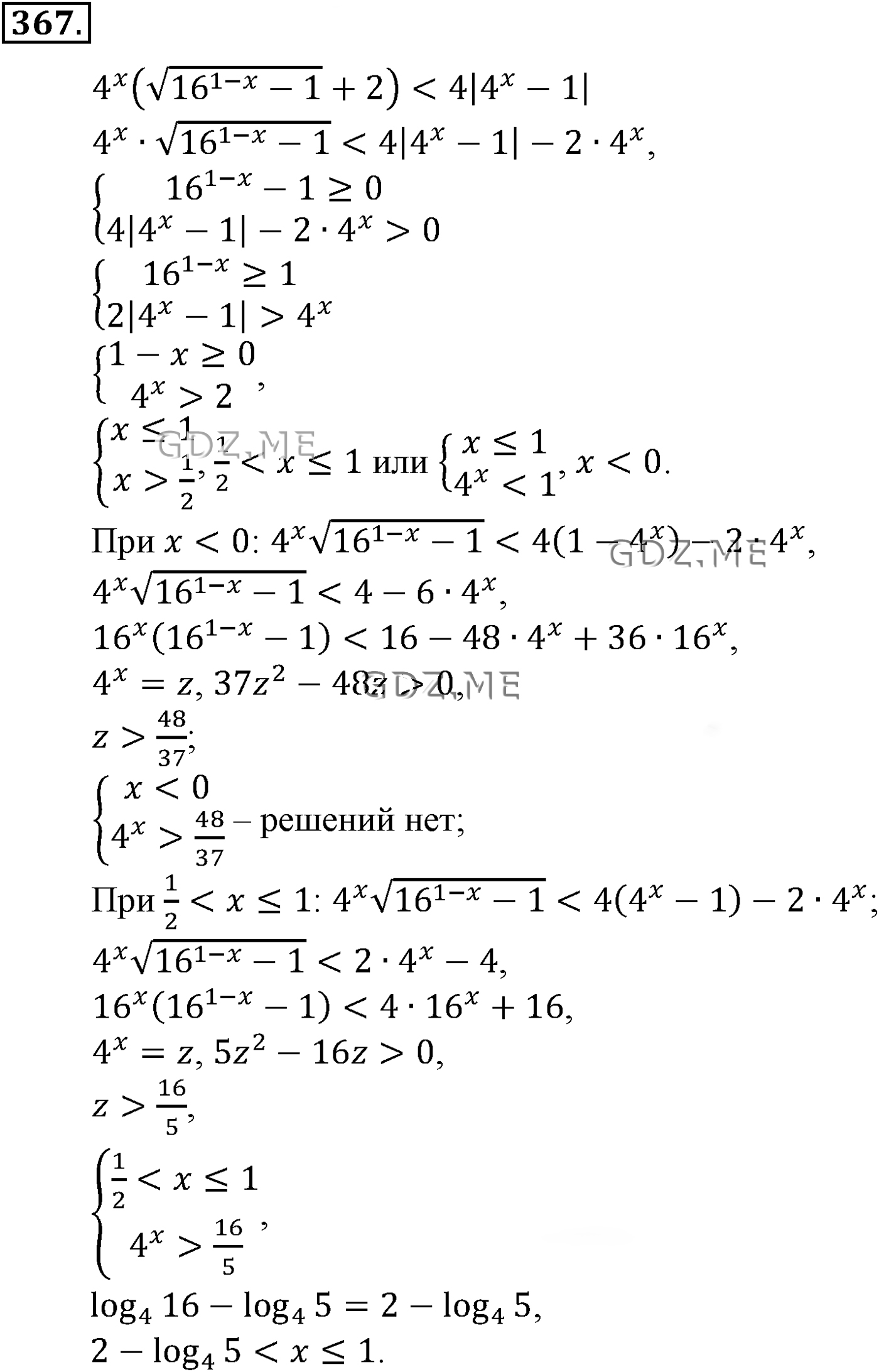 ГДЗ по Алгебре за 10 и 11 класс Алимов, Колягин. Ответ на Задание номер 367 (Глава 4 Логарифмическая функция)