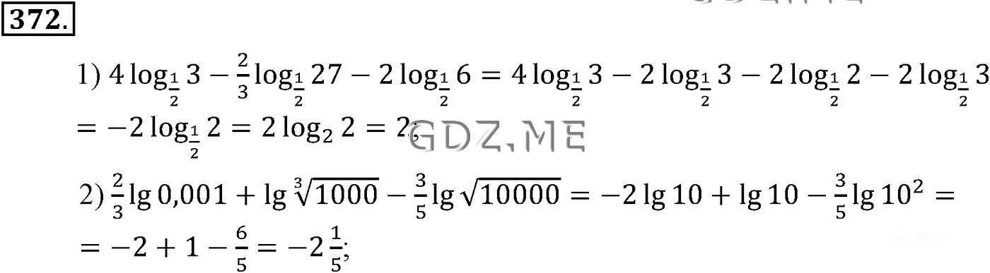 Подробный вариант решения из решебника (ГДЗ): Задание номер 372 (Глава 4 Логарифмическая функция) по предмету Алгебра, за 10 класс, авторы учебника Алимов, Колягин.