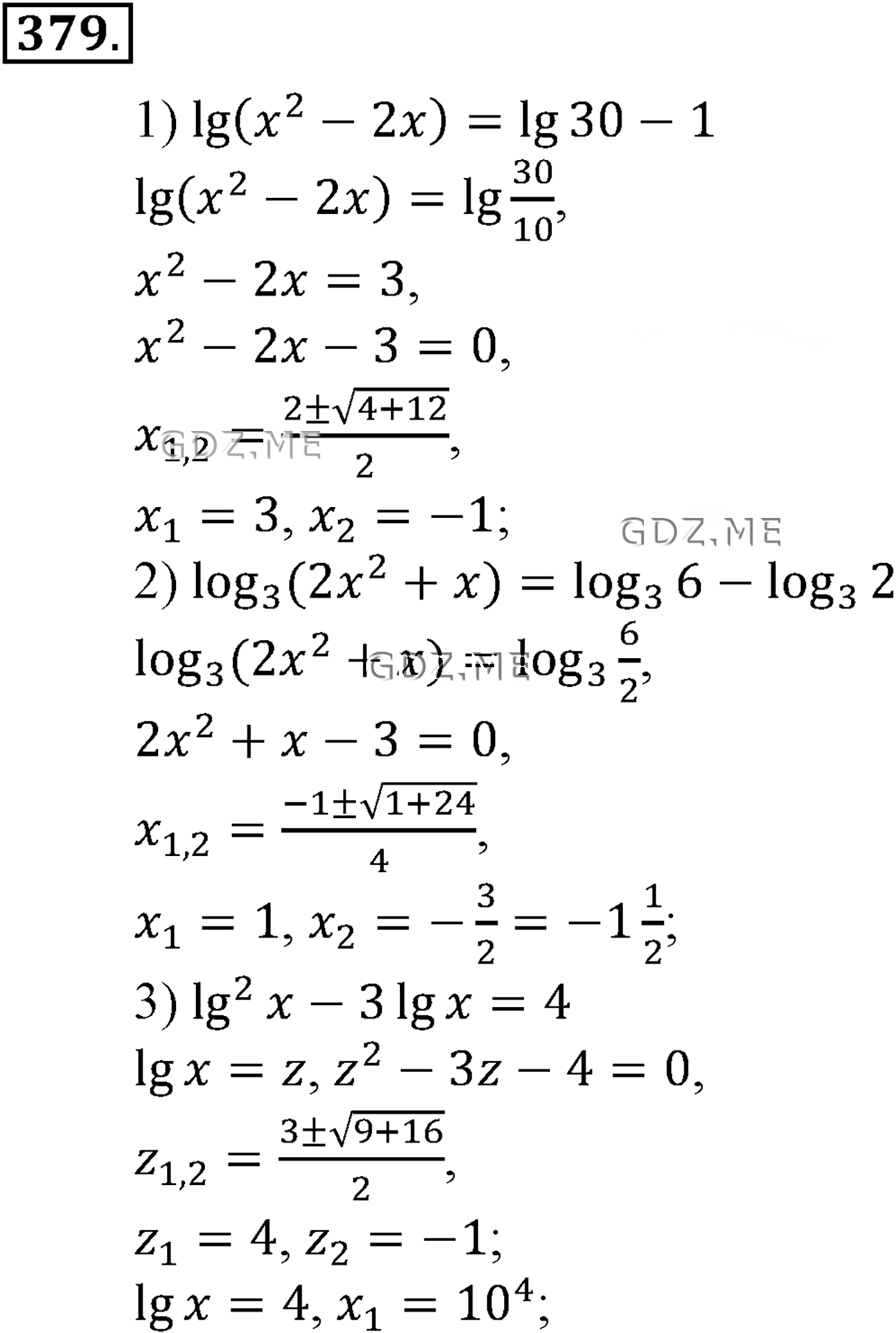 Подробный вариант решения из решебника (ГДЗ): Задание номер 379.1 (Глава 4 Логарифмическая функция) по предмету Алгебра, за 10 класс, авторы учебника Алимов, Колягин.