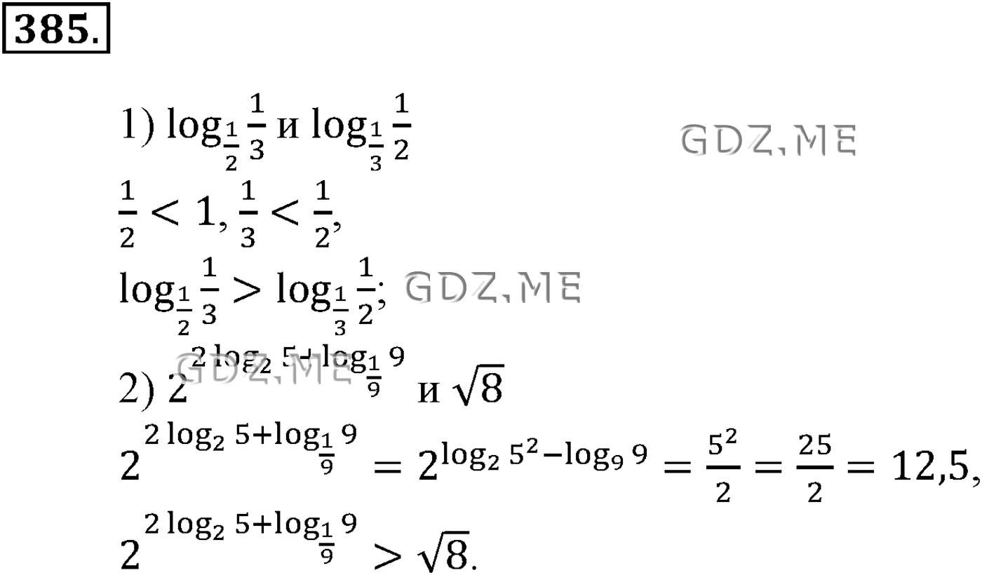 Подробный вариант решения из решебника (ГДЗ): Задание номер 385 (Глава 4 Логарифмическая функция) по предмету Алгебра, за 10 класс, авторы учебника Алимов, Колягин.