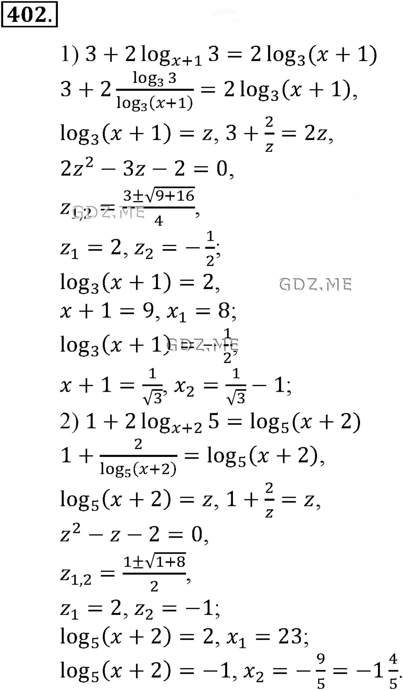 ГДЗ по Алгебре за 10 и 11 класс Алимов, Колягин. Ответ на Задание номер 402 (Глава 4 Логарифмическая функция)