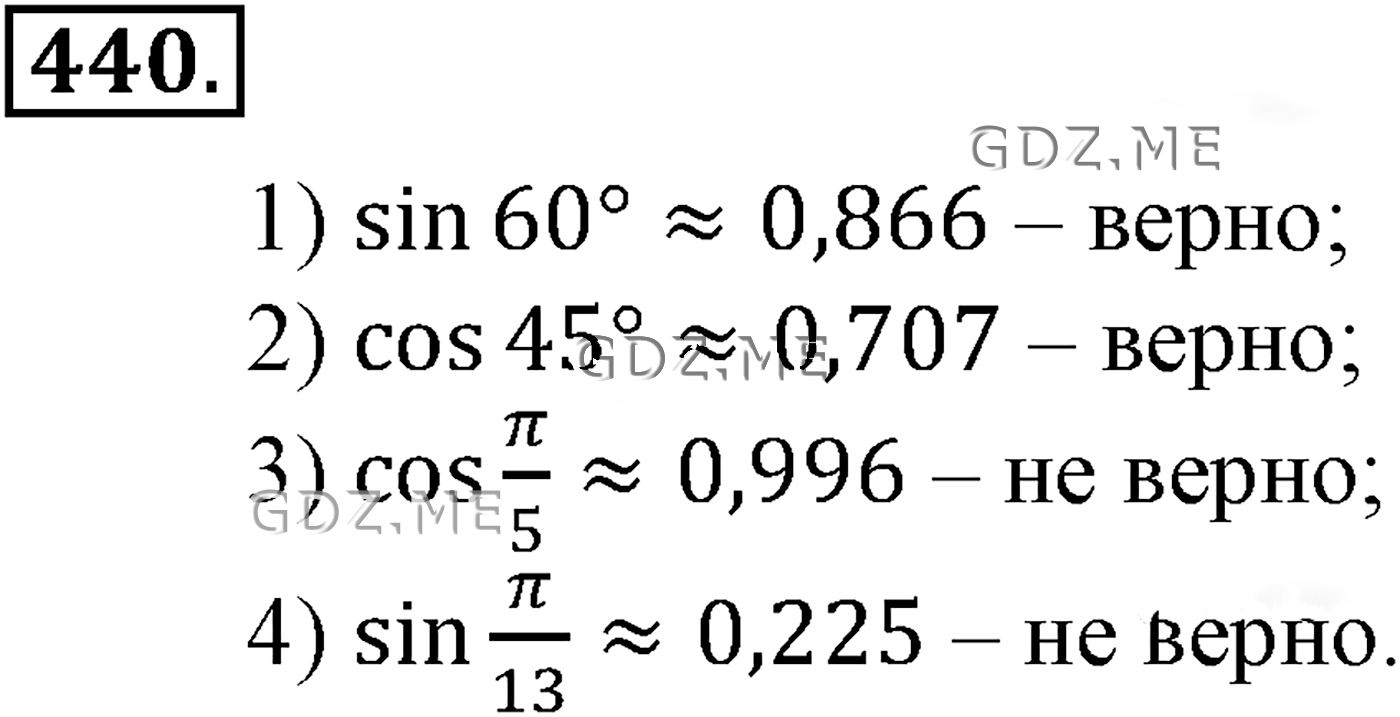 ГДЗ по Алгебре за 10 и 11 класс Алимов, Колягин. Ответ на Задание номер 440 (Глава 5 Тригонометрические формулы)