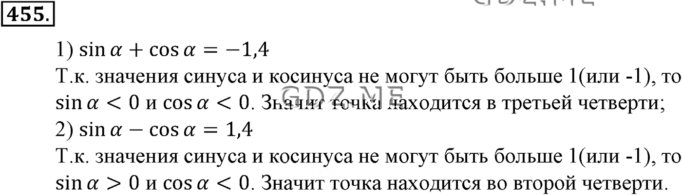 ГДЗ по Алгебре за 10 и 11 класс Алимов, Колягин. Ответ на Задание номер 455 (Глава 5 Тригонометрические формулы)