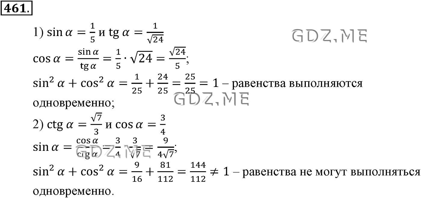 ГДЗ по Алгебре за 10 и 11 класс Алимов, Колягин. Ответ на Задание номер 461 (Глава 5 Тригонометрические формулы)