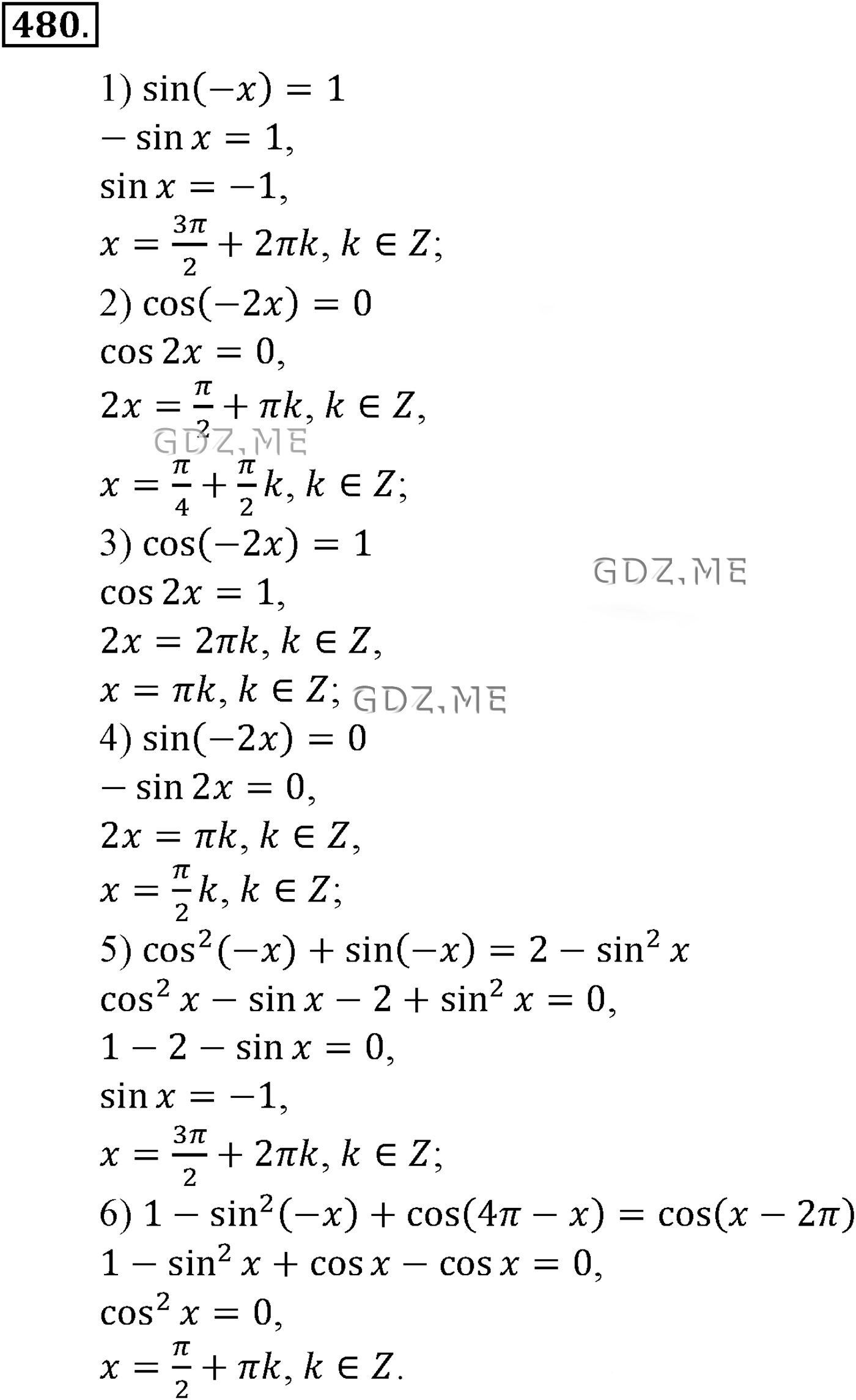 Подробный вариант решения из решебника (ГДЗ): Задание номер 480 (Глава 5 Тригонометрические формулы) по предмету Алгебра, за 10 класс, авторы учебника Алимов, Колягин.