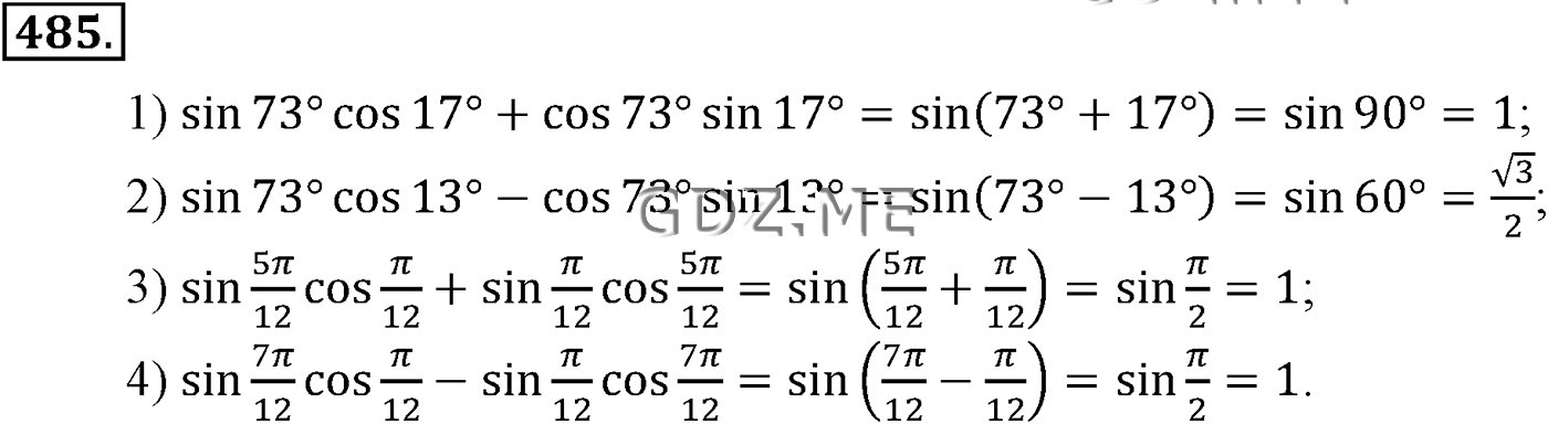 Подробный вариант решения из решебника (ГДЗ): Задание номер 485 (Глава 5 Тригонометрические формулы) по предмету Алгебра, за 10 класс, авторы учебника Алимов, Колягин.