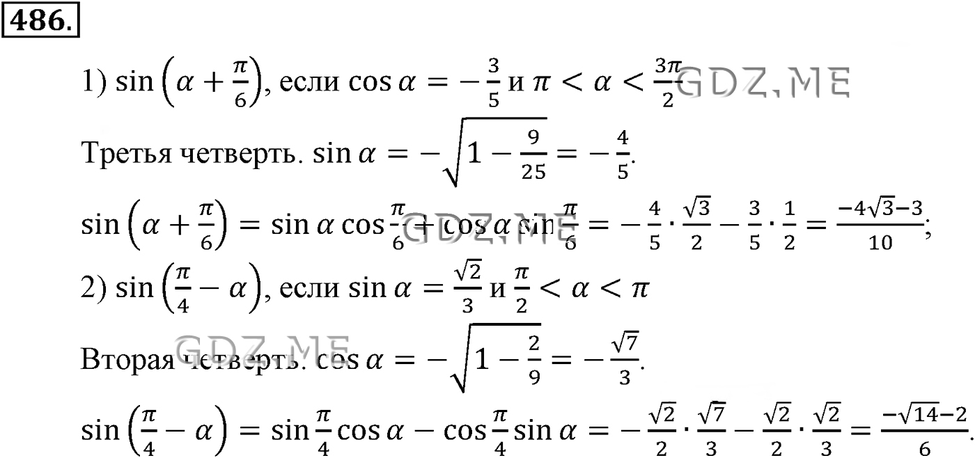 ГДЗ по Алгебре за 10 и 11 класс Алимов, Колягин. Ответ на Задание номер 486 (Глава 5 Тригонометрические формулы)