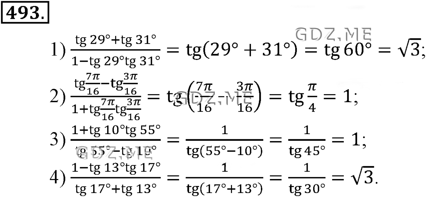ГДЗ по Алгебре за 10 и 11 класс Алимов, Колягин. Ответ на Задание номер 493 (Глава 5 Тригонометрические формулы)