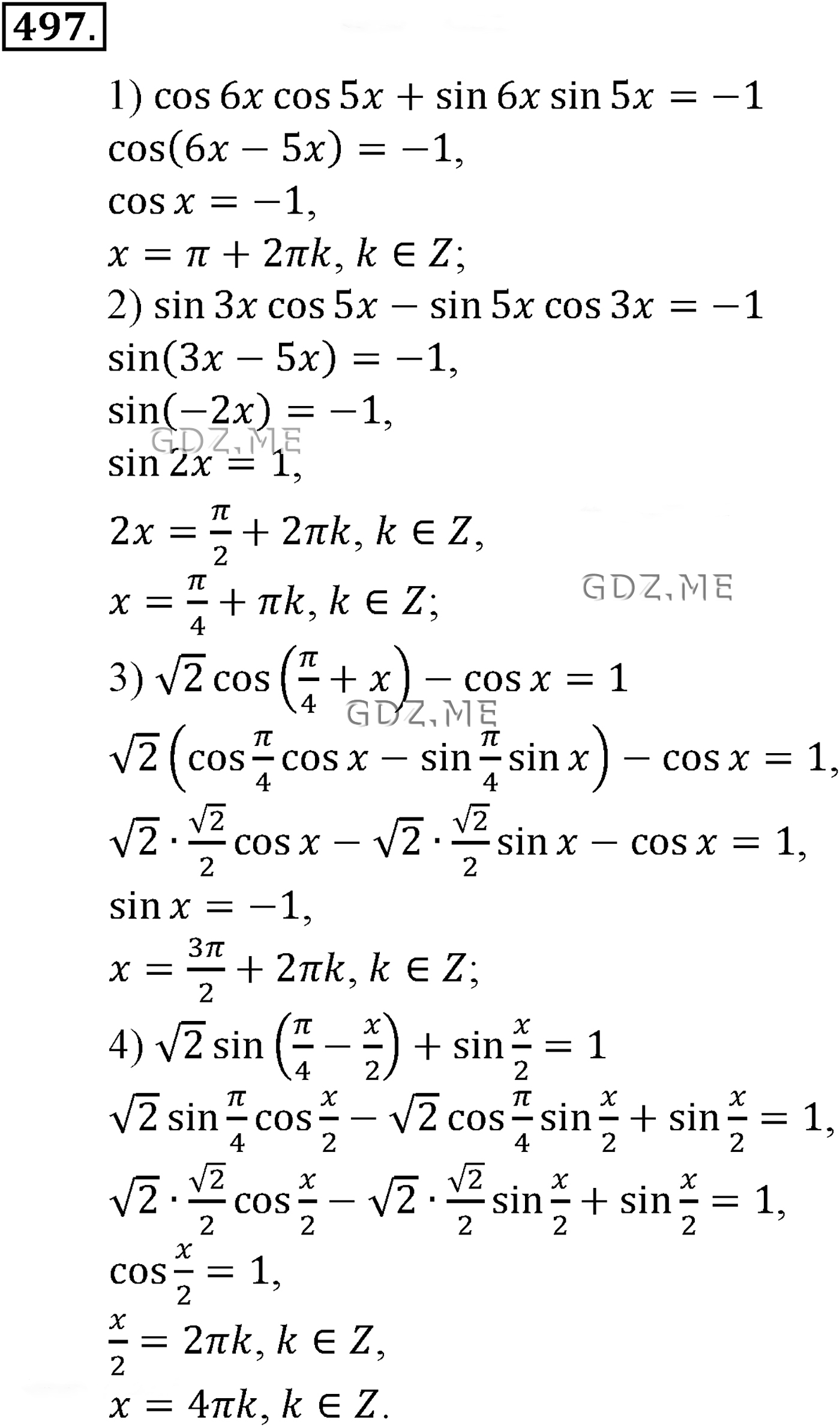 ГДЗ по Алгебре за 10 и 11 класс Алимов, Колягин. Ответ на Задание номер 497 (Глава 5 Тригонометрические формулы)