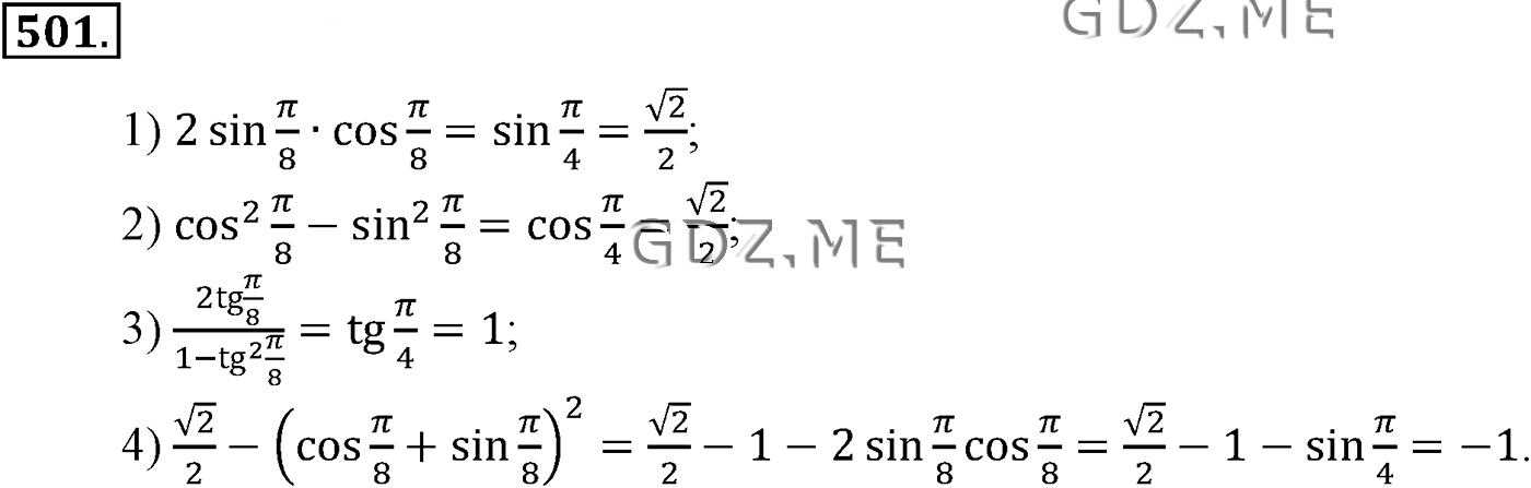 ГДЗ по Алгебре за 10 и 11 класс Алимов, Колягин. Ответ на Задание номер 501 (Глава 5 Тригонометрические формулы)