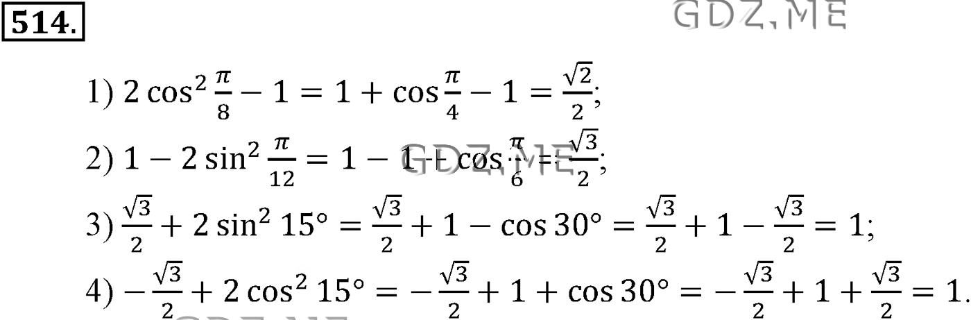 ГДЗ по Алгебре за 10 и 11 класс Алимов, Колягин. Ответ на Задание номер 514 (Глава 5 Тригонометрические формулы)