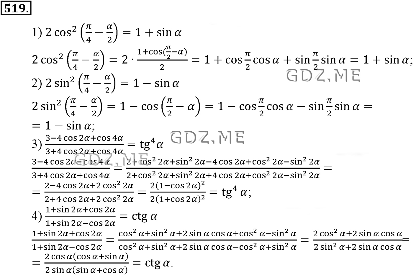 ГДЗ по Алгебре за 10 и 11 класс Алимов, Колягин. Ответ на Задание номер 519 (Глава 5 Тригонометрические формулы)
