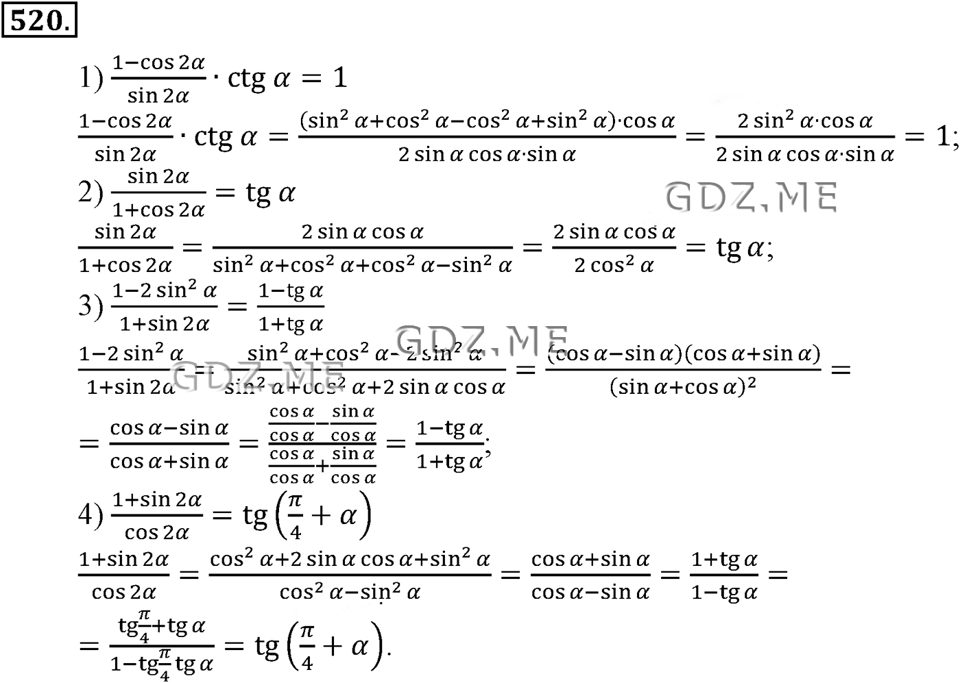 ГДЗ по Алгебре за 10 и 11 класс Алимов, Колягин. Ответ на Задание номер 520 (Глава 5 Тригонометрические формулы)