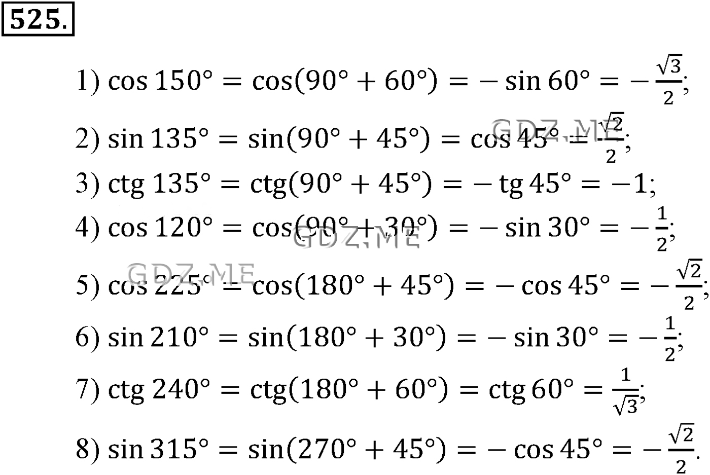 ГДЗ по Алгебре за 10 и 11 класс Алимов, Колягин. Ответ на Задание номер 525 (Глава 5 Тригонометрические формулы)