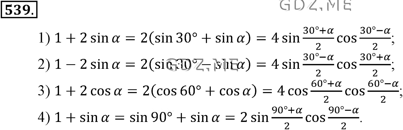 ГДЗ по Алгебре за 10 и 11 класс Алимов, Колягин. Ответ на Задание номер 539 (Глава 5 Тригонометрические формулы)