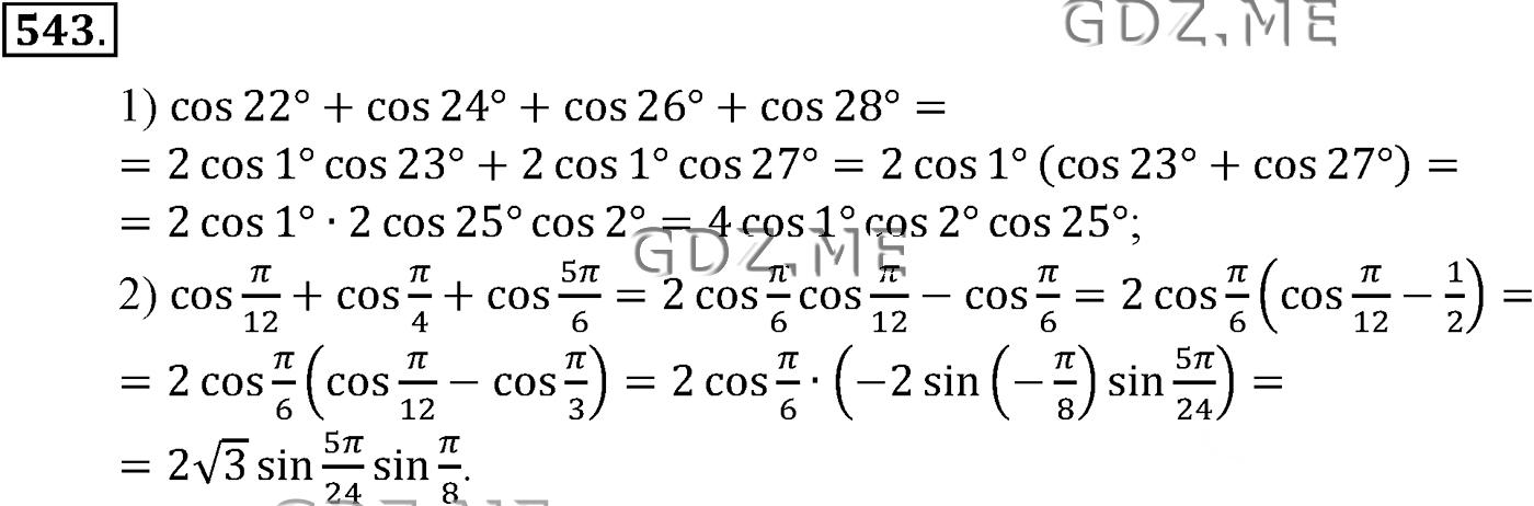 ГДЗ по Алгебре за 10 и 11 класс Алимов, Колягин. Ответ на Задание номер 543 (Глава 5 Тригонометрические формулы)