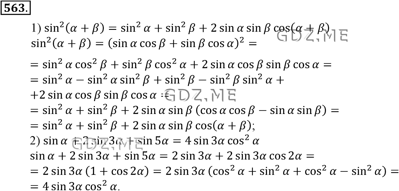 ГДЗ по Алгебре за 10 и 11 класс Алимов, Колягин. Ответ на Задание номер 563 (Глава 5 Тригонометрические формулы)