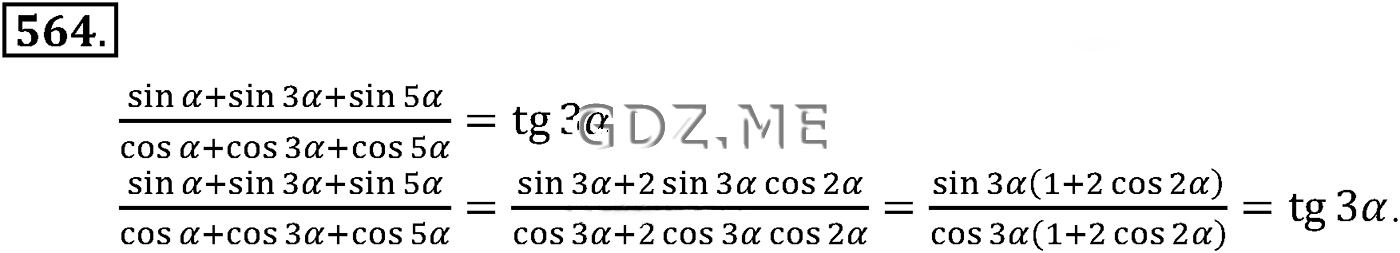 ГДЗ по Алгебре за 10 и 11 класс Алимов, Колягин. Ответ на Задание номер 564 (Глава 5 Тригонометрические формулы)