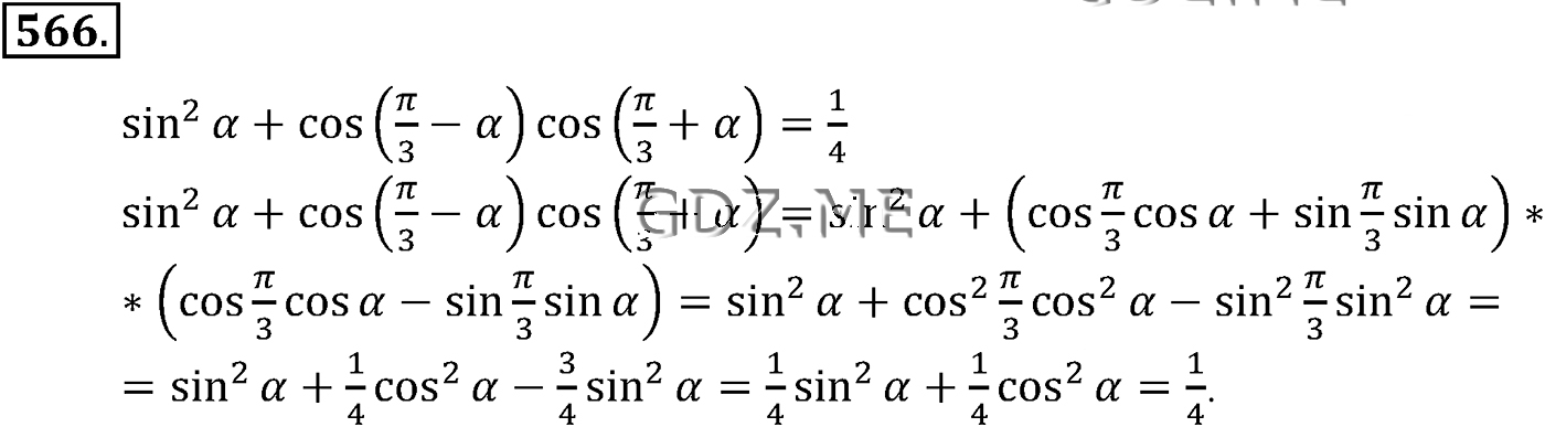 Подробный вариант решения из решебника (ГДЗ): Задание номер 566 (Глава 5 Тригонометрические формулы) по предмету Алгебра, за 10 класс, авторы учебника Алимов, Колягин.