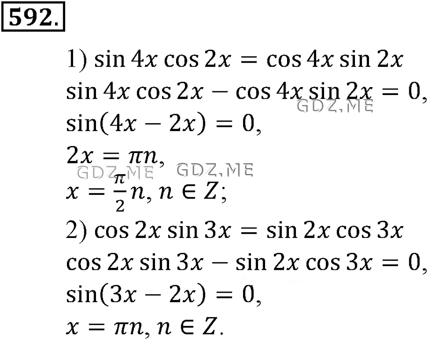 Подробный вариант решения из решебника (ГДЗ): Задание номер 592 (Глава 6 Тригонометрические уравнения) по предмету Алгебра, за 10 класс, авторы учебника Алимов, Колягин.
