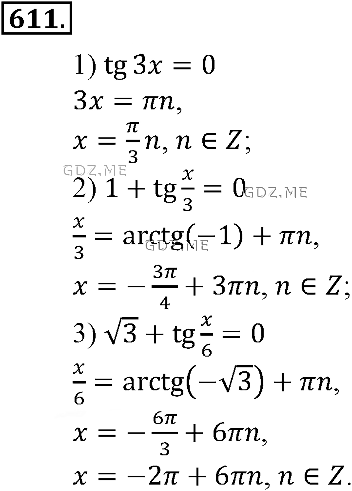 ГДЗ по Алгебре за 10 и 11 класс Алимов, Колягин. Ответ на Задание номер 611 (Глава 6 Тригонометрические уравнения)