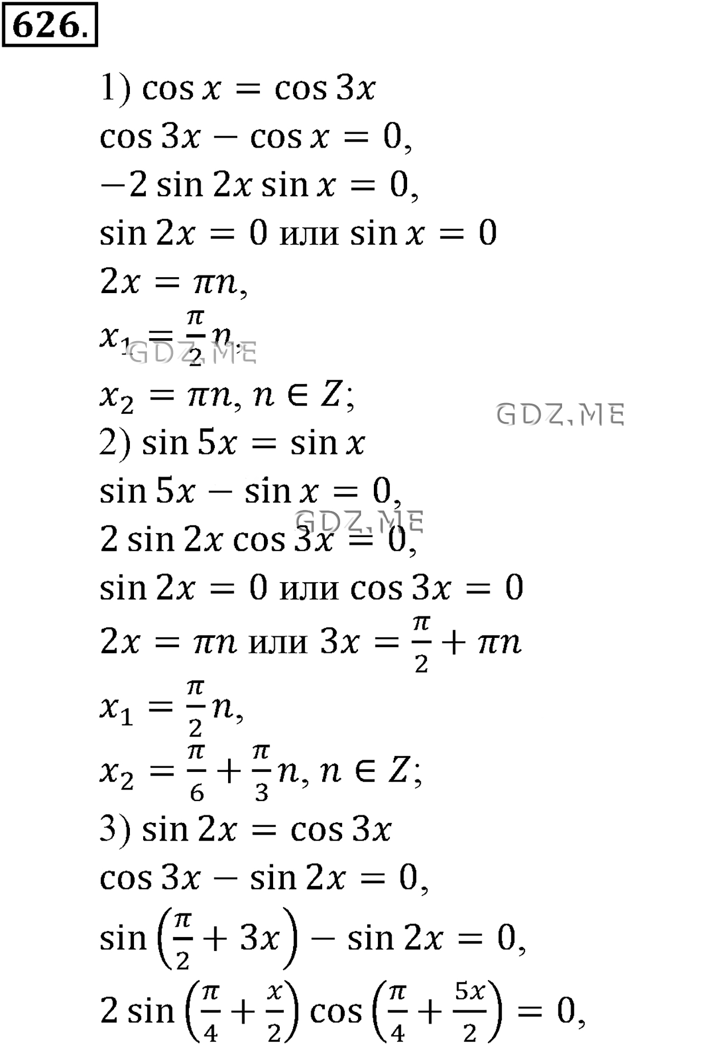 Подробный вариант решения из решебника (ГДЗ): Задание номер 626.1 (Глава 6 Тригонометрические уравнения) по предмету Алгебра, за 10 класс, авторы учебника Алимов, Колягин.