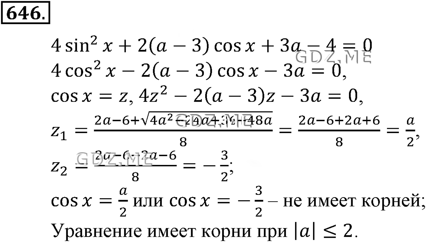 ГДЗ по Алгебре за 10 и 11 класс Алимов, Колягин. Ответ на Задание номер 646 (Глава 6 Тригонометрические уравнения)