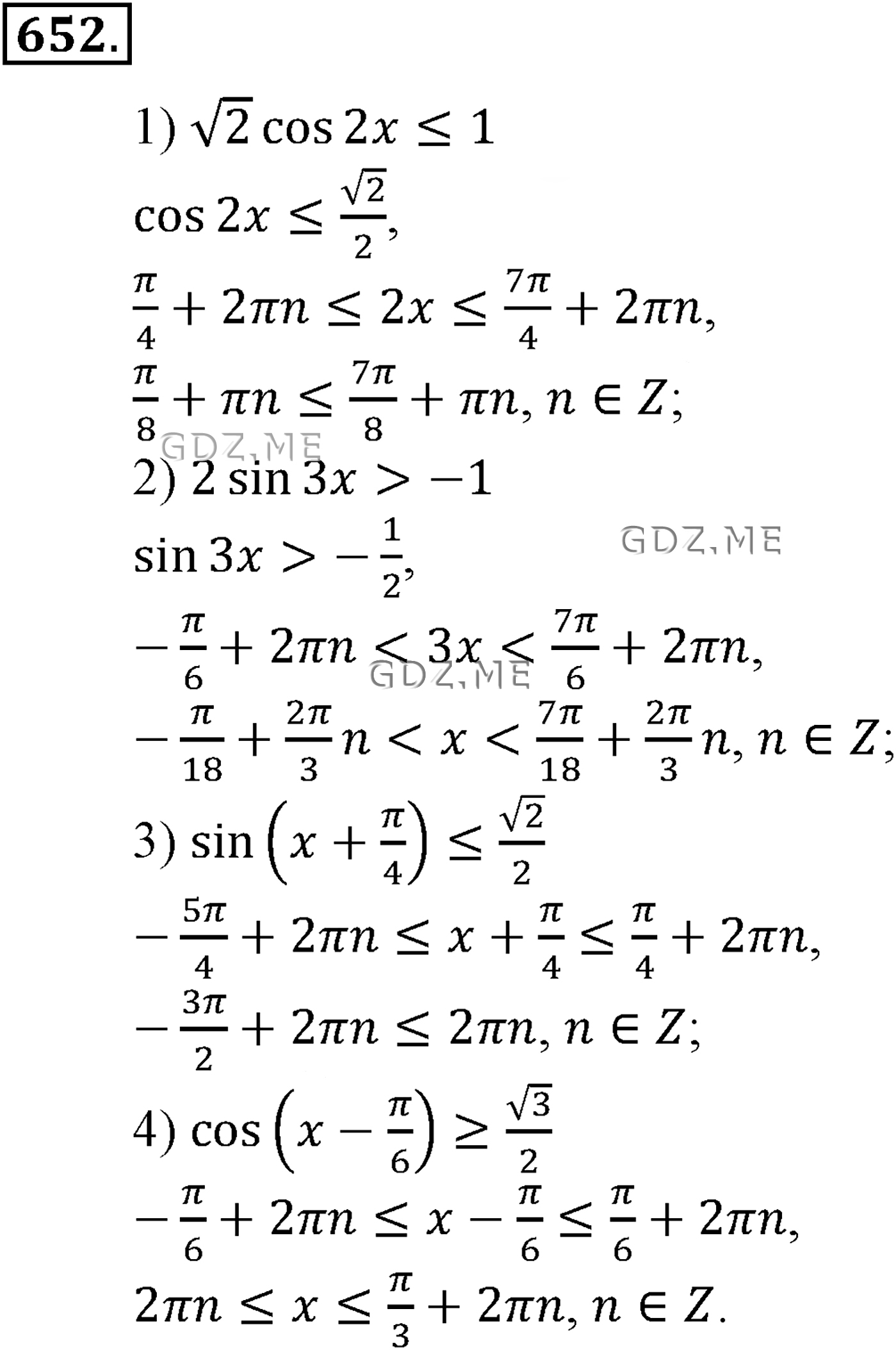 ГДЗ по Алгебре за 10 и 11 класс Алимов, Колягин. Ответ на Задание номер 652 (Глава 6 Тригонометрические уравнения)