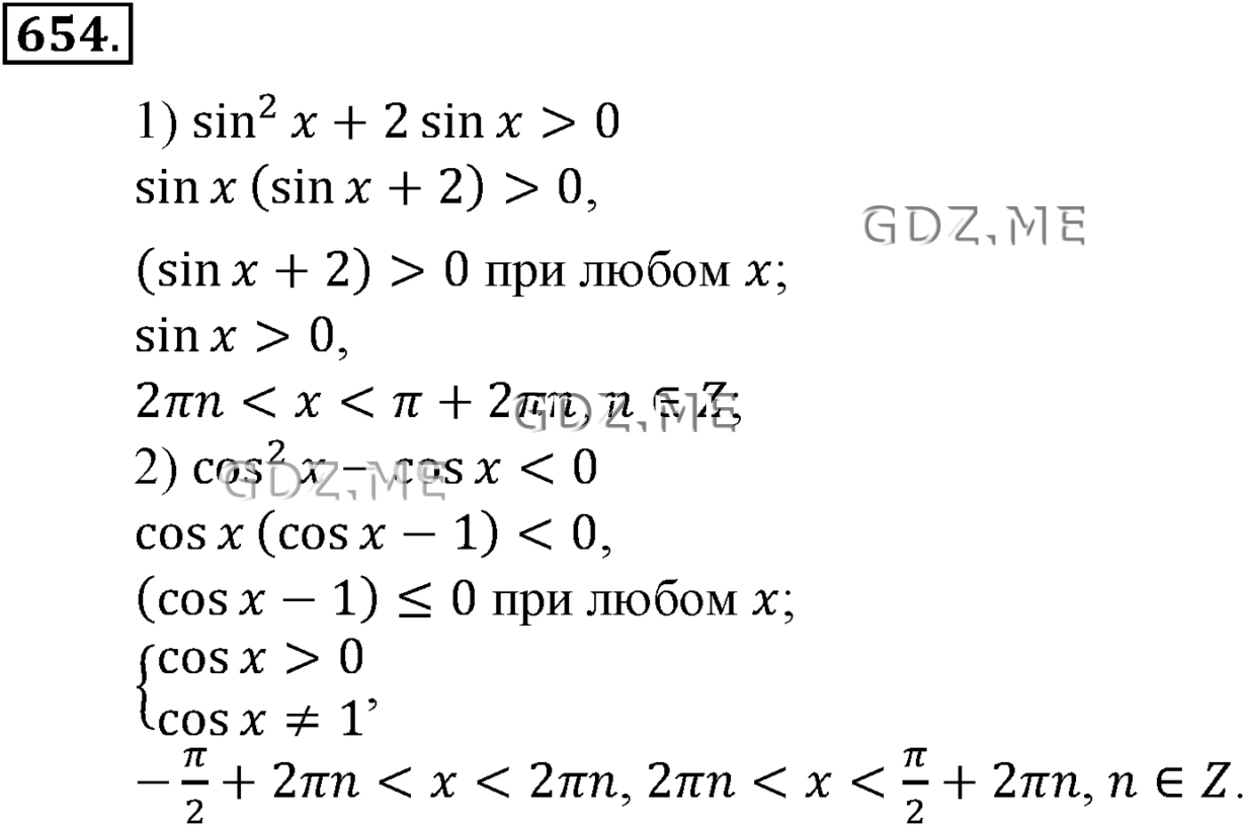 ГДЗ по Алгебре за 10 и 11 класс Алимов, Колягин. Ответ на Задание номер 654 (Глава 6 Тригонометрические уравнения)