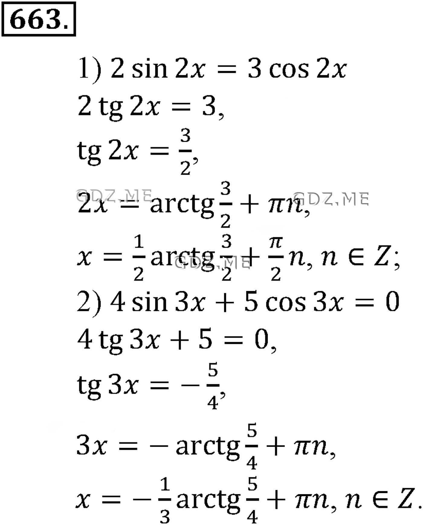 Подробный вариант решения из решебника (ГДЗ): Задание номер 663 (Глава 6 Тригонометрические уравнения) по предмету Алгебра, за 10 класс, авторы учебника Алимов, Колягин.