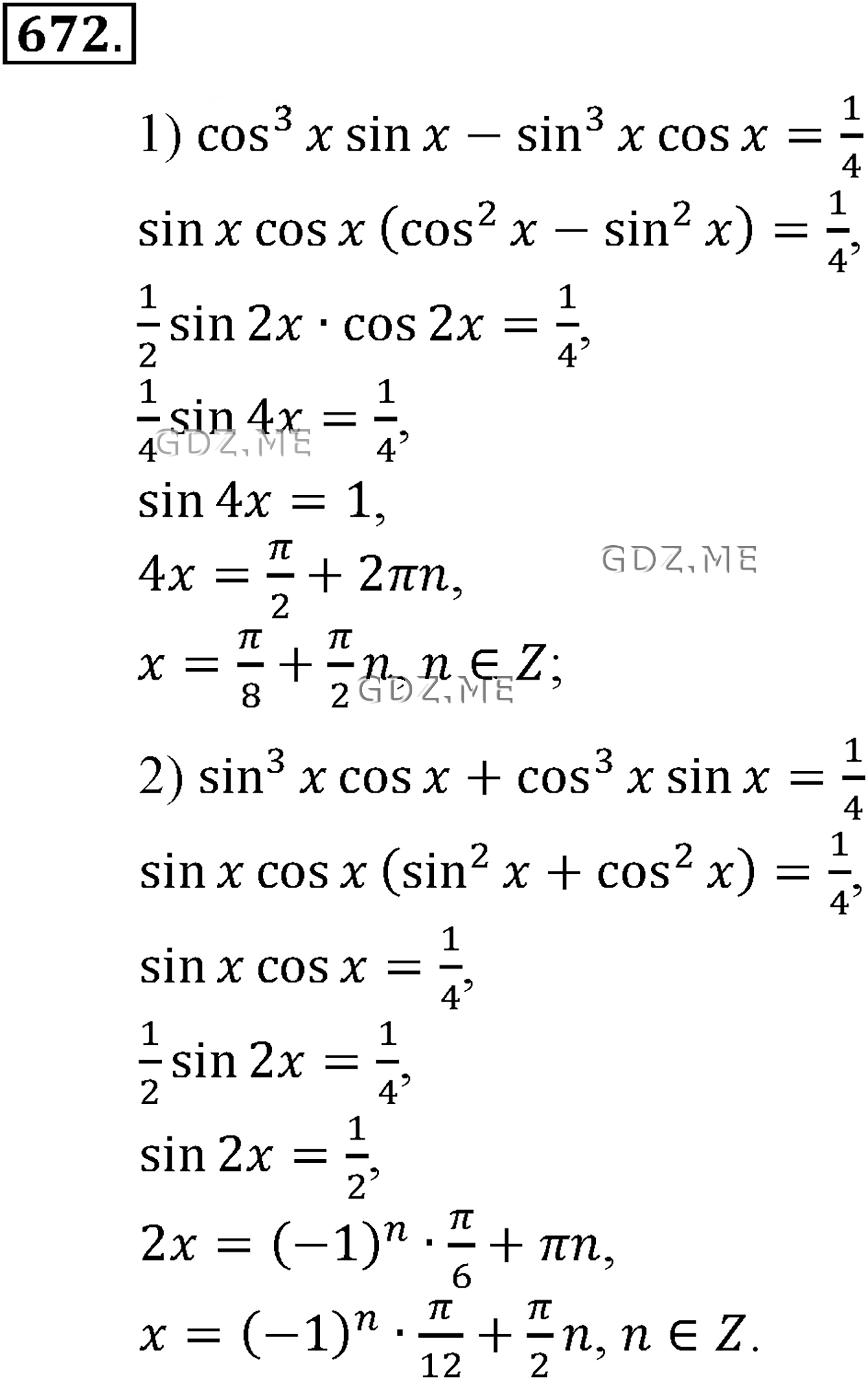 ГДЗ по Алгебре за 10 и 11 класс Алимов, Колягин. Ответ на Задание номер 672 (Глава 6 Тригонометрические уравнения)