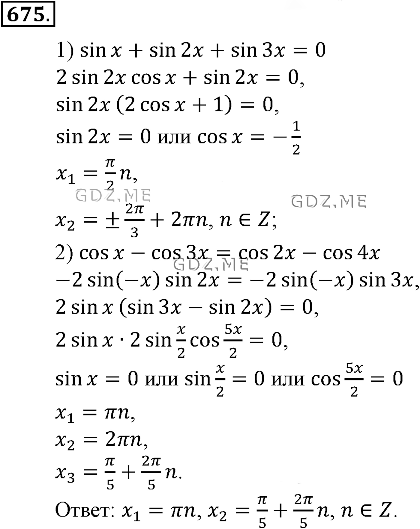 Подробный вариант решения из решебника (ГДЗ): Задание номер 675 (Глава 6 Тригонометрические уравнения) по предмету Алгебра, за 10 класс, авторы учебника Алимов, Колягин.